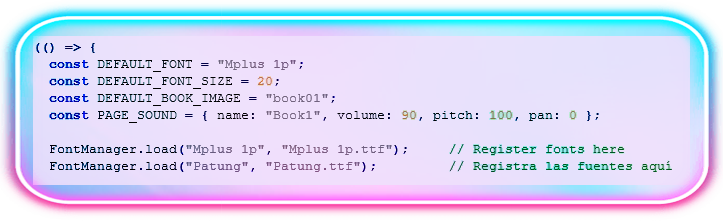 - Each font to be used must be previously registered in the js file, below the others fonts at the beginning of the code. 🖊️