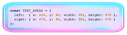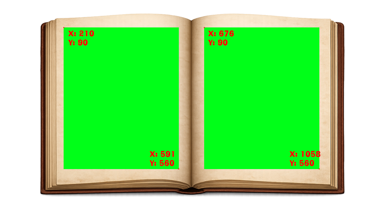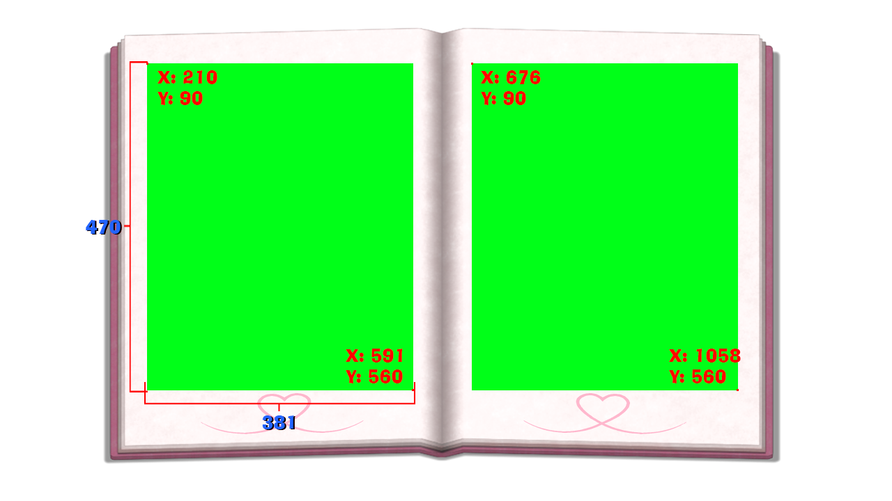 The green area is where the text will be displayed; the pixel coordinates we need to define that area are those from the left upwards and those from the right downwards.